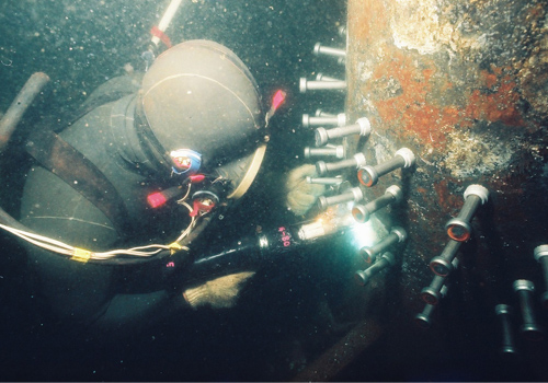 陸上の溶接とは異なり、水温、水圧、浮力などが溶接の仕上がりや強度に大きく影響してきます。